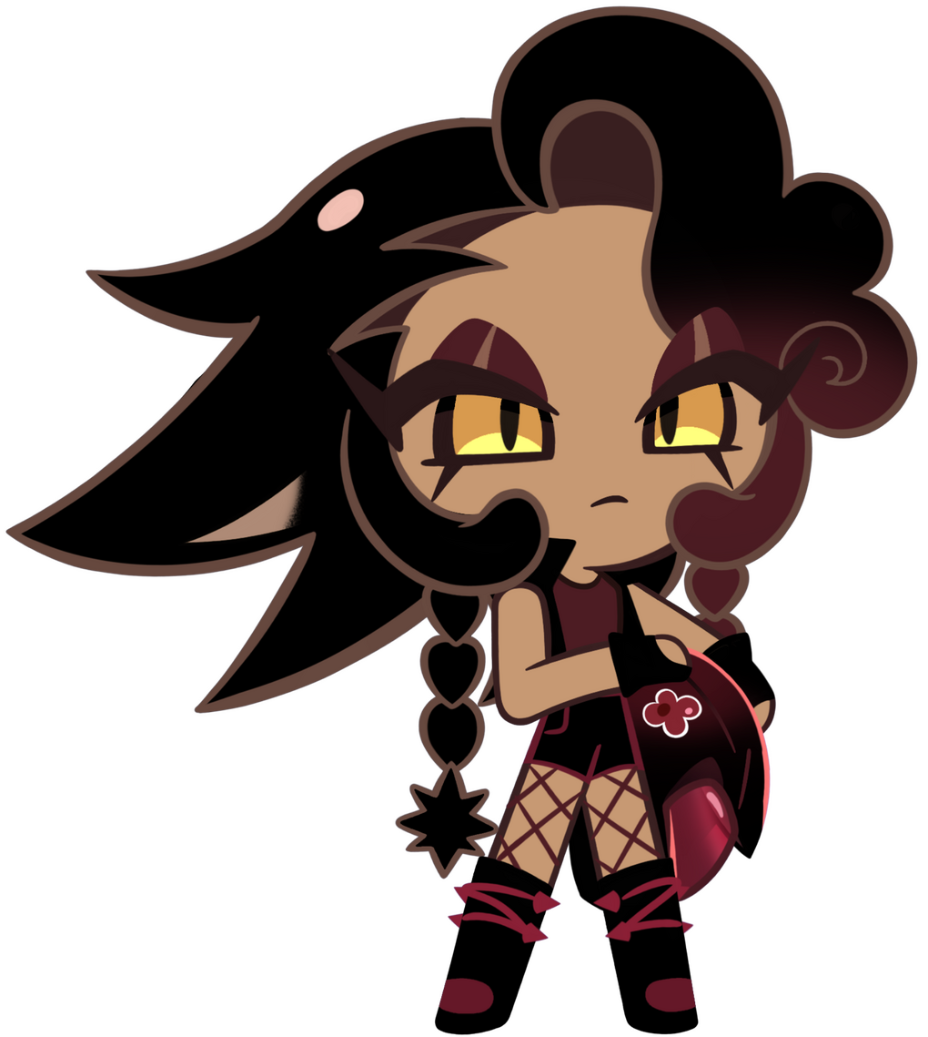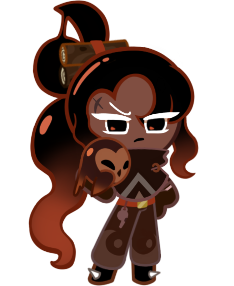 Story: “One hardened cacao bean covered in sweet chocolate was enough to bake the great princess of the Dark Cacao Kingdom. The poor princess was born with her dough softer than the snow on the mountains. Choco Swirl Cookie is one for constant training until her dough cracks, she strives to be strong. Many cookies know of her weariness to travel outside of the kingdom walls without someone beside her. The young princess’s selfish desire for more power will lead her down a path of disaster.”